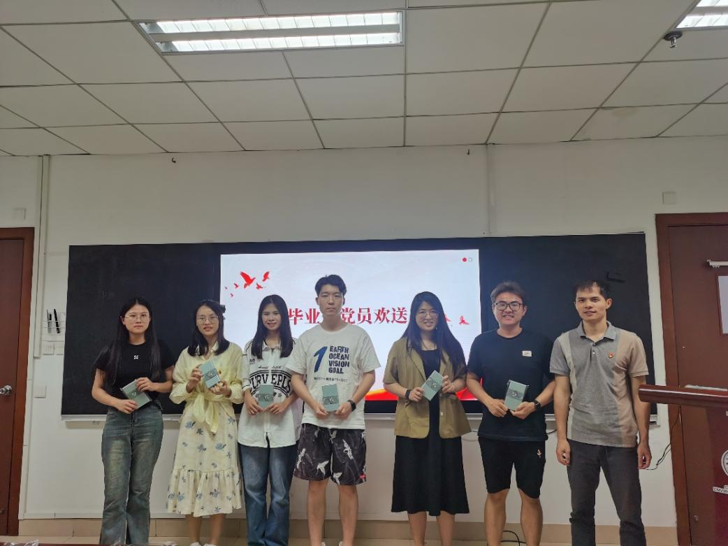 活动还安排了毕业生党员欢送环节,支部为他们送上精心准备的纪念礼物。带着满满的不舍与祝福,大家依依惜别、合影留念。