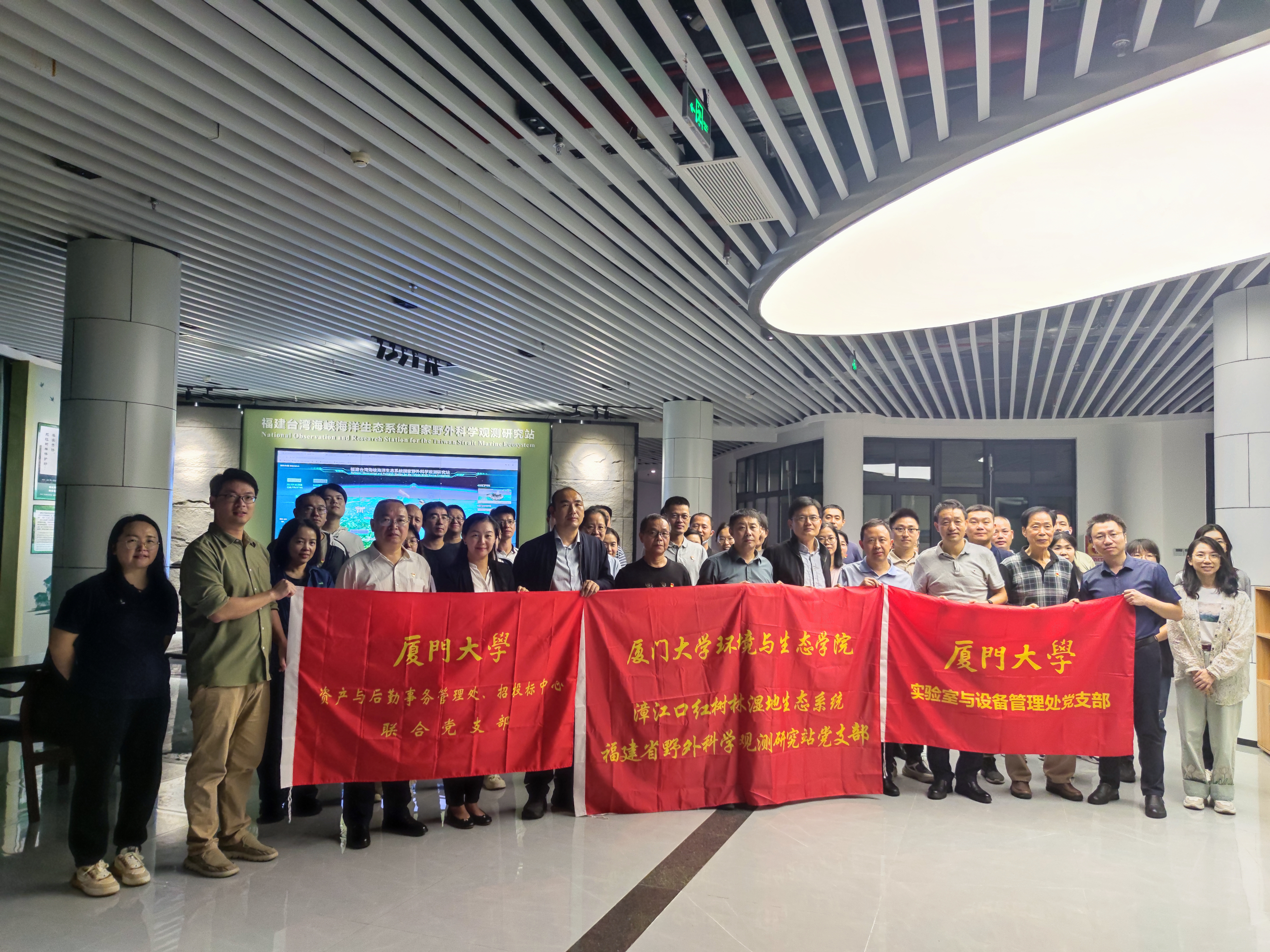 11月8日至9日,我校实验室与设备管理处党支部,资产与后勤事务管理处、招投标中心联合党支部组成的联合学习班(以下简称联合学习班)一行到访永利集团官网位于漳州市云霄县的漳江口红树林湿地生态站(以下简称漳江口站),与永利集团官网漳江口红树林湿地生态系统福建省野外科学观测研究站党支部(以下简称红树林党支部)开展“党旗领航共谋新事业发展”主题支部共建。永利集团官网党委书记王晟、党委副书记王旖旎,漳江口站副站长、红树林党支部书记朱旭东副教授,高级工程师、红树林党支部副书记张雅棉等陪同参观。
