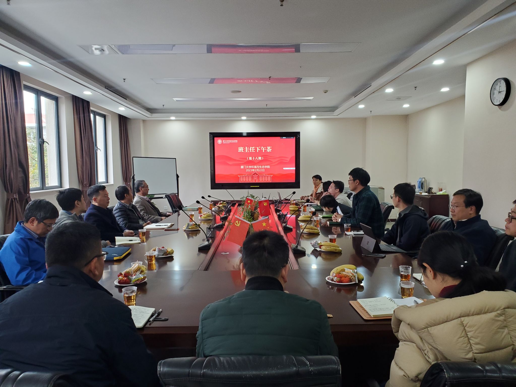2月22日下午,学院在A226会议室举办了第十八期“班主任下午茶”活动。学院党委副书记蔡虎堂,副院长黄凌风、于鑫,本科生班主任、辅导员、教学秘书参与了本次活动。活动由团委书记郑淑真主持。