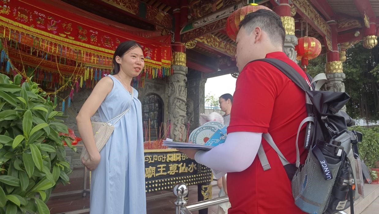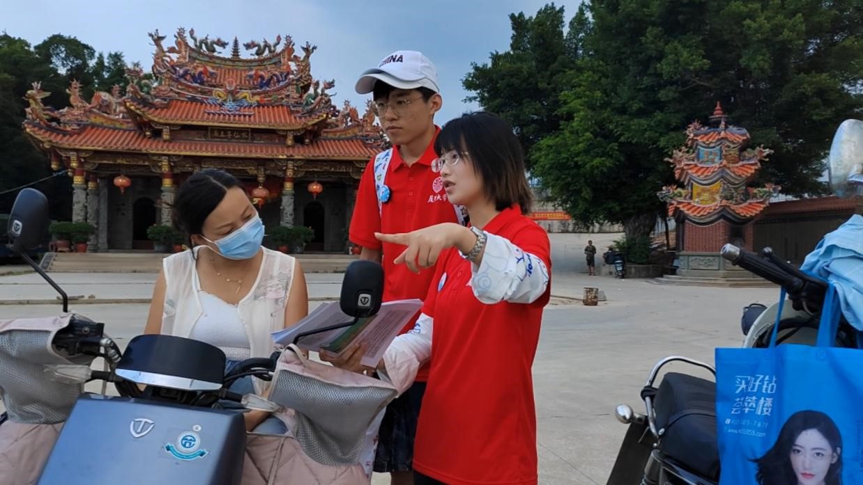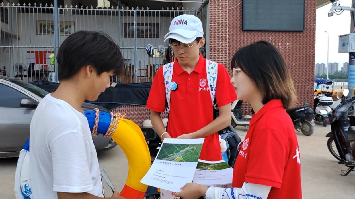 8月4日上午,实践队成功到达实践地点,并于下午在漳州马洲村附近的九龙江流域展开调研,向周边居民发放河湖长制宣传手册和“河小禹”纪念品,同时采访了在九龙江游玩的人员,初步了解九龙江及周围的环境问题,同时积极向村民宣传环保知识,讲解河流保护的重要性以及“河长制”等环境治理制度的内容和意义。