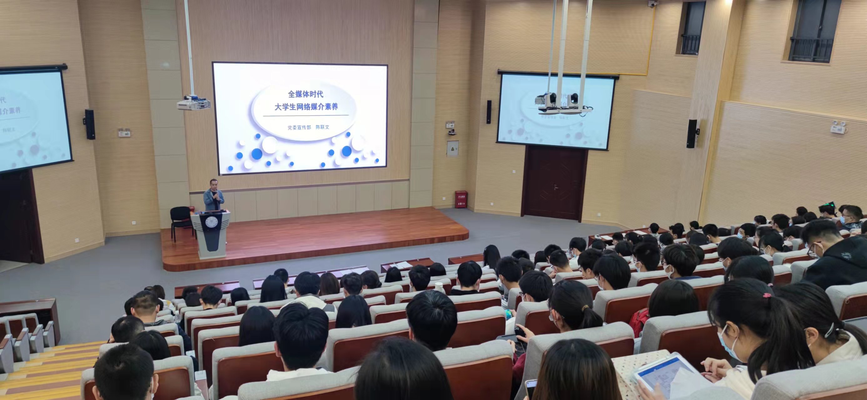 陈联文从“全媒体时代的媒体环境变化”“当前的网络环境”“如何做有素养的网民”三部分深入浅出地进行了讲解,深入剖析近年来国内各高校发生的大学生网络舆情案例,让同学们深刻认识到网络素养的重要性,警示同学们要有正确辨别网络信息的能力,不信谣,不传谣,谨言慎行,强化红线意识,做有素养的网络人。